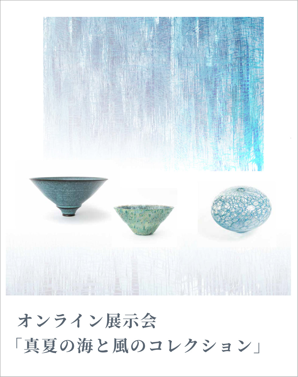 It's a hot, hot summer. Normally, cicadas would be chirping loudly, but perhaps they are staying cool underground this summer? They are nowhere to be seen. How are you all doing? Ginza Chuo-dori feels like an oven, with an unprecedented heat index. Ippodo has come up with a unique project for the first time. For those who don't want to go out, whether from home, the office, or a summer retreat, this is an online exhibition where you can enjoy art and crafts as if you were in a gallery, all from the comfort of your own home. This is a new initiative, so the system is still a bit rough around the edges, but we've searched across Japan (and even overseas) for beautiful items, connected with artists, and gathered works of art and crafts that match Ihodo's taste. Please click and visit the Ginza Ihodo Online Exhibition.