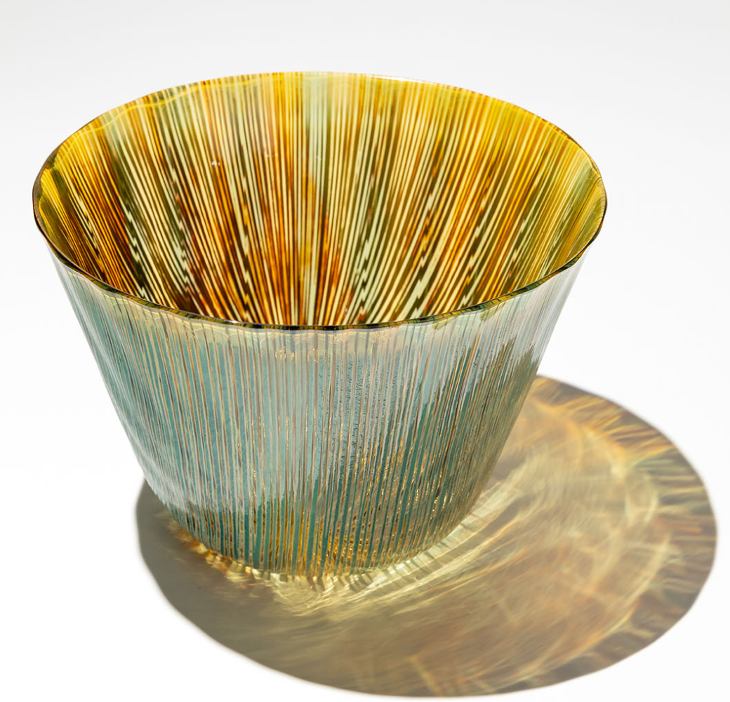 Tsukada Midori's glass evokes the sounds of nature, like trees rustling in the forest in the wind or bubbles rising from the depths of the ocean.