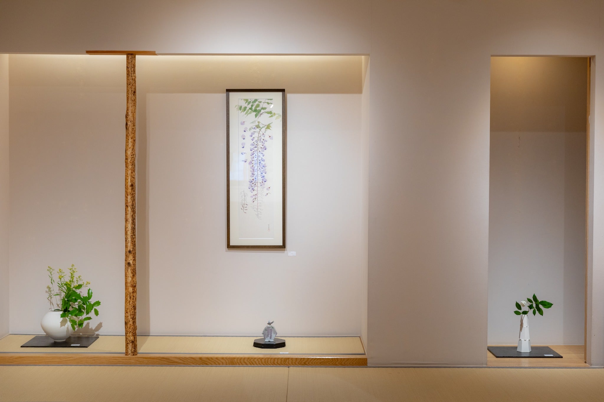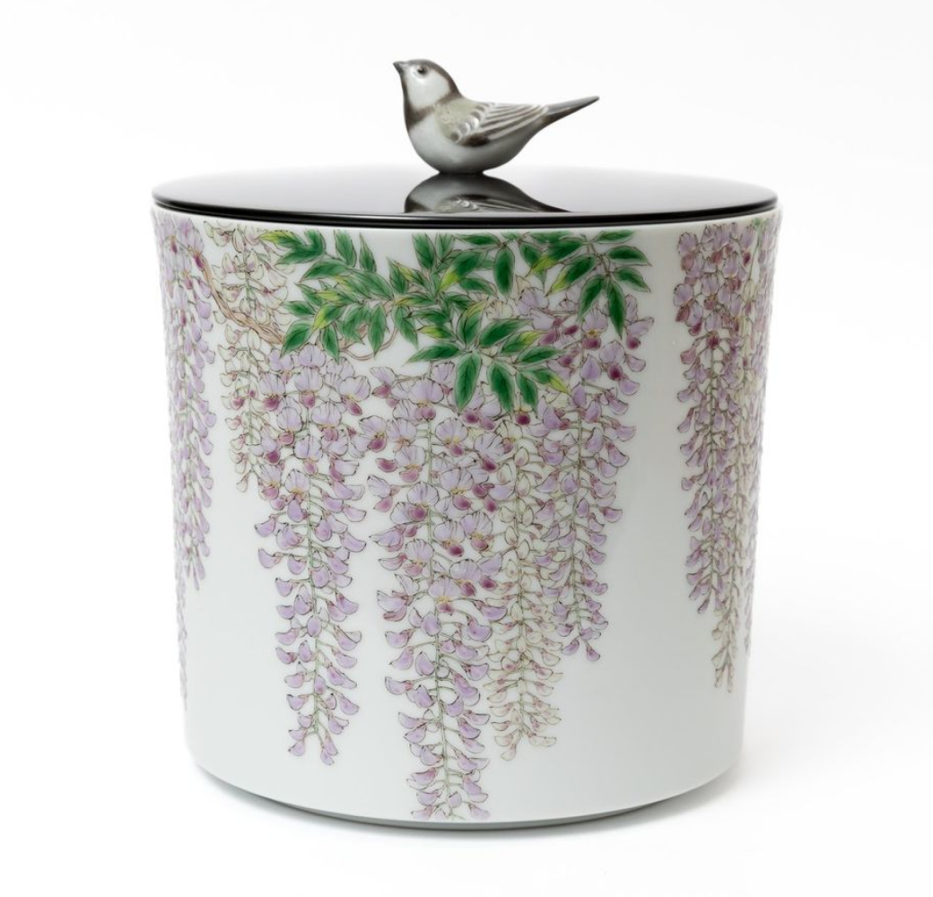 Her delicate brushwork with glazes and elegant sense of color are the highlights of this exhibition, which is her first collaboration with Nishita Kenji. The exhibition will center around wisteria flowers, and feature tea utensils with a seasonal Japanese feel, including water jars, tea bowls, and incense burners.